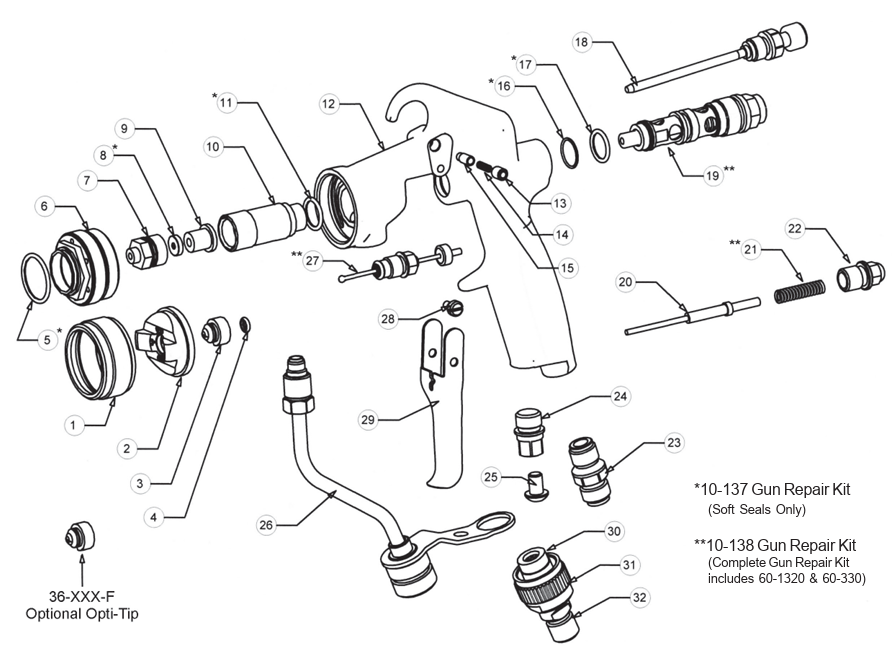 | Repair Kit — Complete | 10-138 — soft seals plus air valve assembly (60-1320) and needle seal cartridge (66-330) |