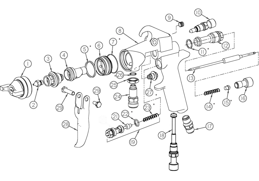 | L100C-15-2466 | Siphon | 1.5mm | 21-2466 | 15 | 13" | High-output siphon for thick enamels, high-build primers, adhesives |