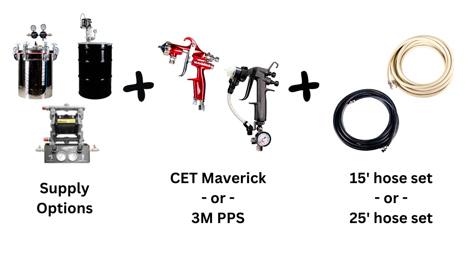 All setups include 25’ hose set and choice of Marverick or 3M PPS spray guns